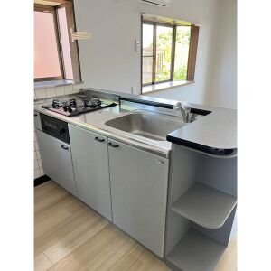 ○ 給湯器(ガス) ○ ガスコンロ(2口) ○ システムキッチン ○ 対面式キッチン ○ カウンターキッチン